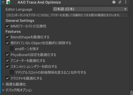 1. アバターのルートに AAO Trace And Optimize を追加します。