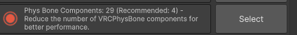 1. SDKのアップロード画面、またはHierarchyから、アバターに入っているすべての PhysBoneコンポーネント を探します。